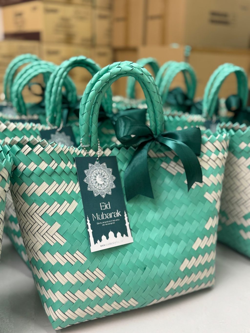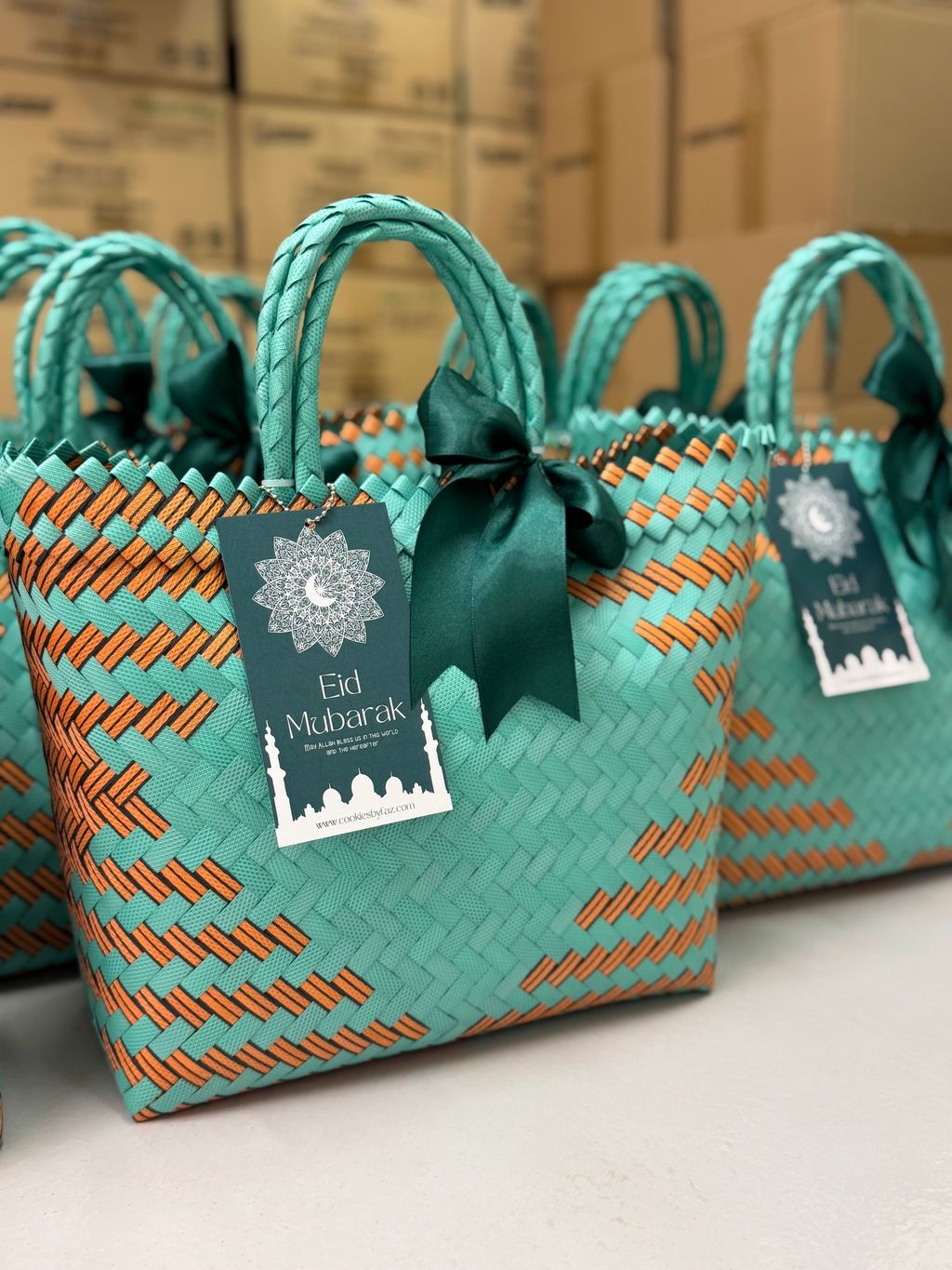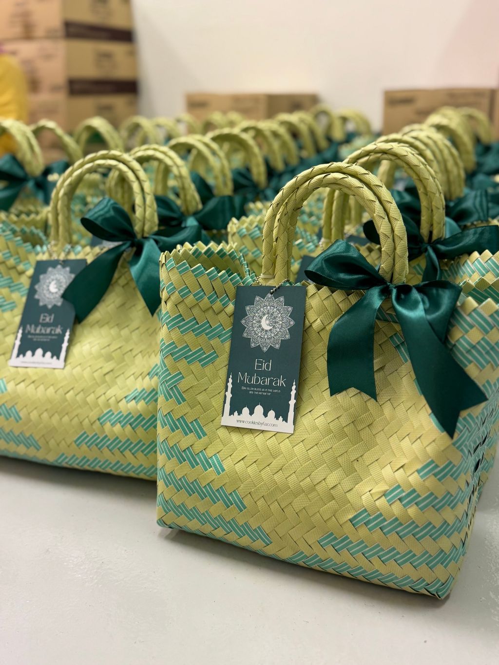 A beautiful blend of Middle Eastern flavors and Malaysian craftsmanship — premium baklava nestled in handmade woven bags, paired with a mini prayer mat and aromatic premium drip coffee.